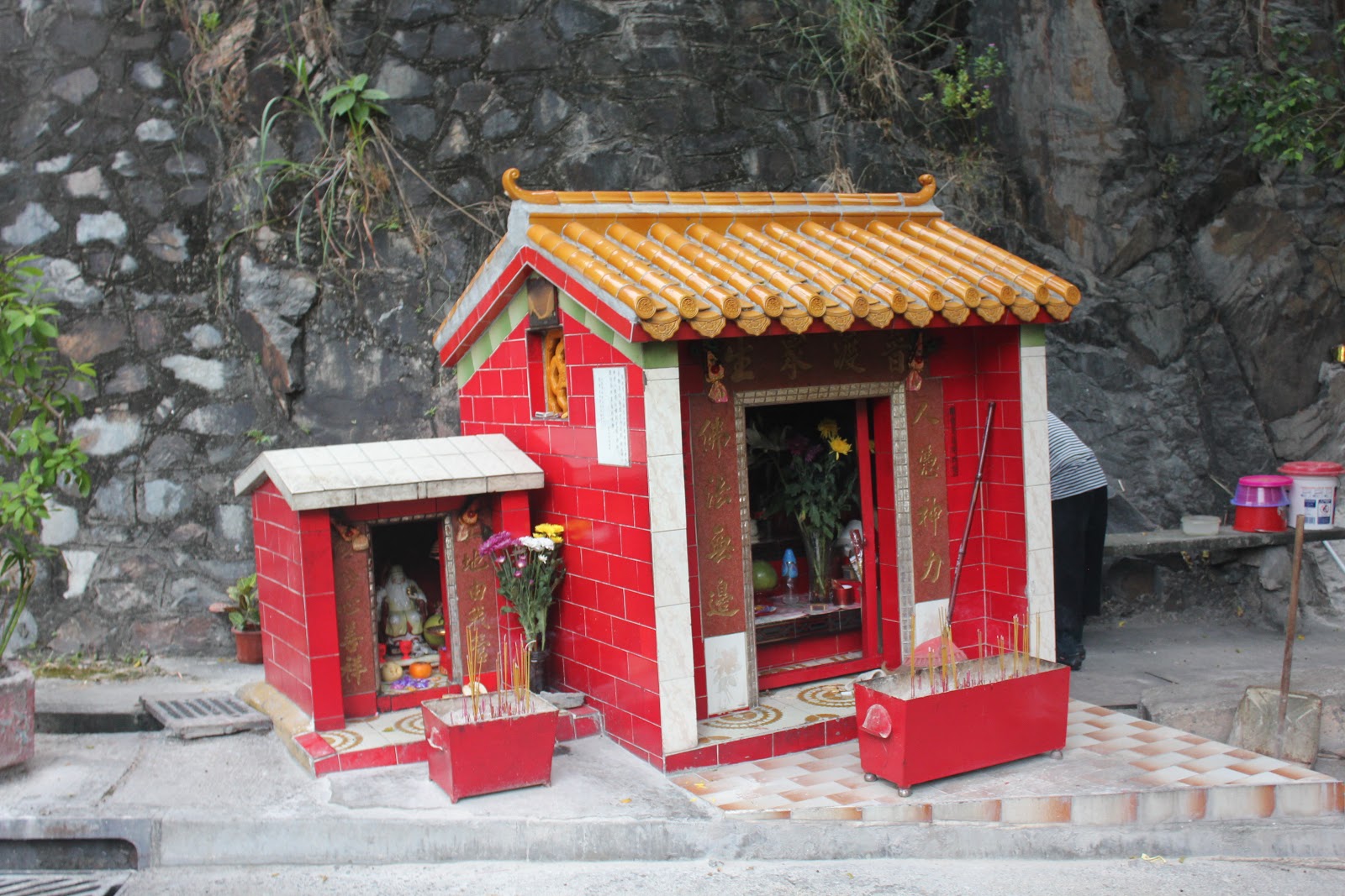 My son and I continued down a quiet shady path lined with trees, he running ahead at full speed and me taking random photographs of trees, buildings, sky or anything that caught my eye. We met a cute little friendly poodle who took a fancy to my son and we played with him for some time before continuing our walk. We soon passed a small red Chinese temple where some incense sticks were burning outside. At this time in the morning everything looked so peaceful and even the Chinese locals who look so serious during the day seemed extremely friendly. Soon we were exchanging ”Jou Saans” (Good Mornings) with each other, some even said it in English! All of them were busy doing some sort of exercise ranging from stretching, breathing deeply, rubbing and tapping their joints to walking backwards! When we reached the sea front, some were even swimming in the sea along with passing boats and ships, right under a sign which said ‘Do not swim or play at this seashore!’ This is the place which caught me off guard, when I had first come here with a friend, with its vast collection of Chinese Gods and Goddesses all spread across the slope, cemented in the ground, facing the sea with incense sticks burning around them. I had later read somewhere that the idols are brought here when they become old and are no longer needed, to get a lengthy retirement by the sea!